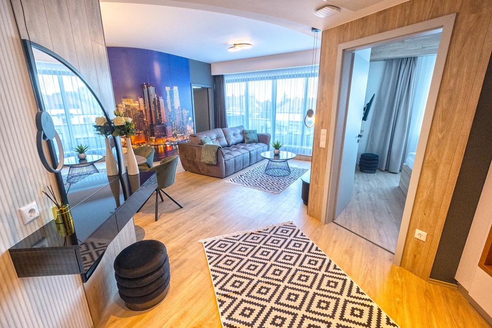 Éljétek át az egyedi Penthouse élményt, amikor a jakuzziból látjátok a várost és a város közepén található Arborétum fáit, amikor a hatalmas tér és a luxus párosul. Már a belépéskor impozáns látvány fog fogadni, egyedi bútorok és kiegészítők teszik ezt még pazarabbá. De a látvány mellett a kényelemre is nagy hangsúlyt fektettünk, extra nagy méretű kihúzható kanapéból tudjátok nézni a 65 “-os 4K-s tévét. Hatalmas étkezőasztal és pazar konyha, reggeliző szigettel teszik még kényelmesebbé a pihenést. Két hálószoba mindegyike egyedi és különleges. Az extra élmények a fürdőszobánál sem maradhatnak el, tágas zuhany, ahol akár ketten is tudtok zuhanyozni, dupla mosdó és egy 4 fős infraszauna fokozza tovább az élvezeteket. Gyertek akár ketten, barátokkal, vagy családdal az élmény garantált!